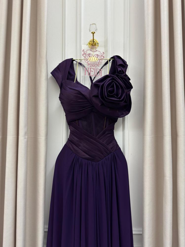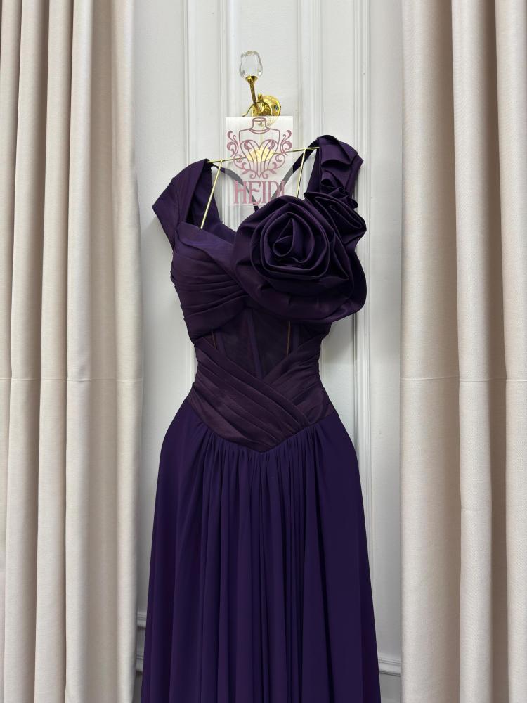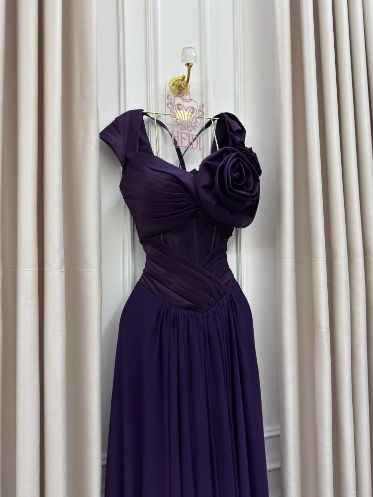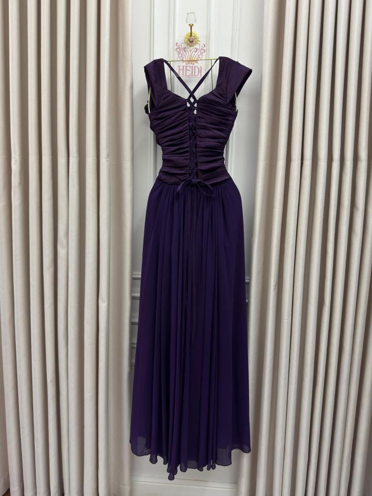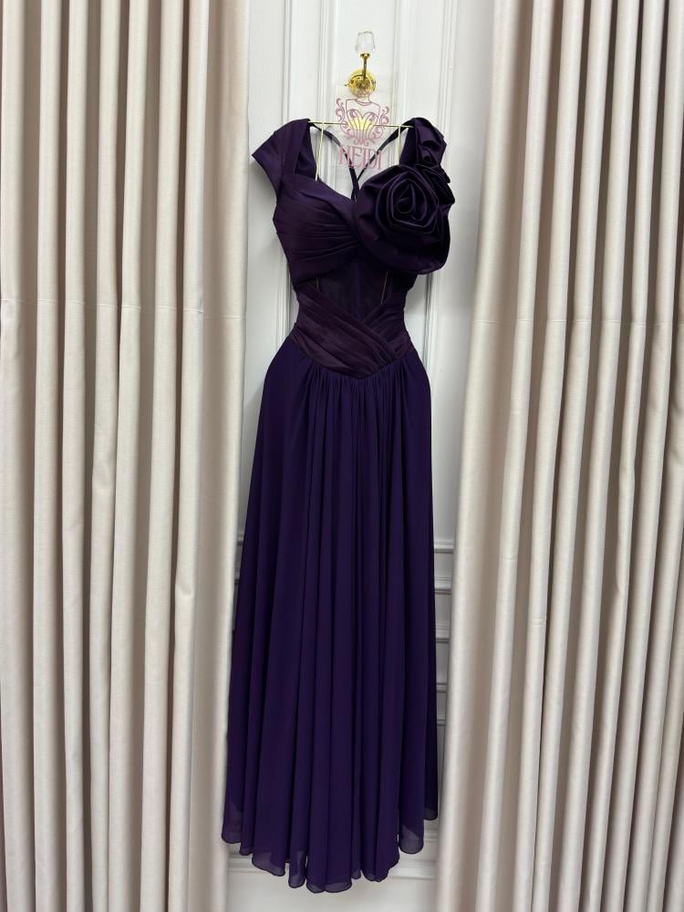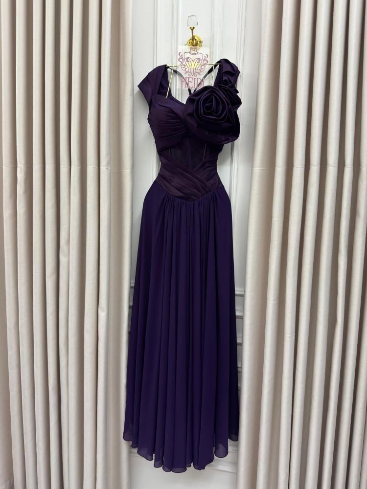 فستان سهره لون موف بخامة الشانتون شيفون كلوش